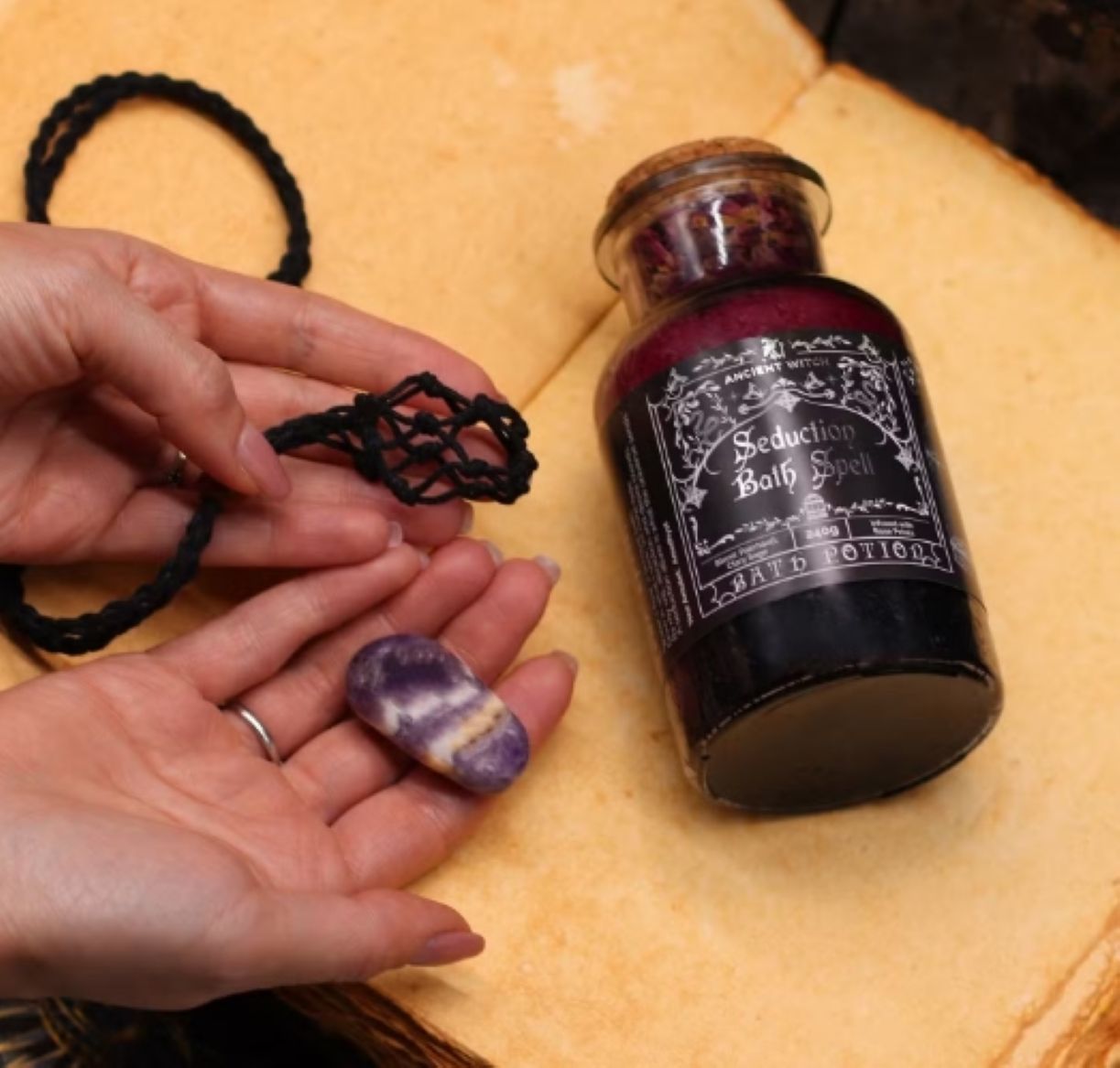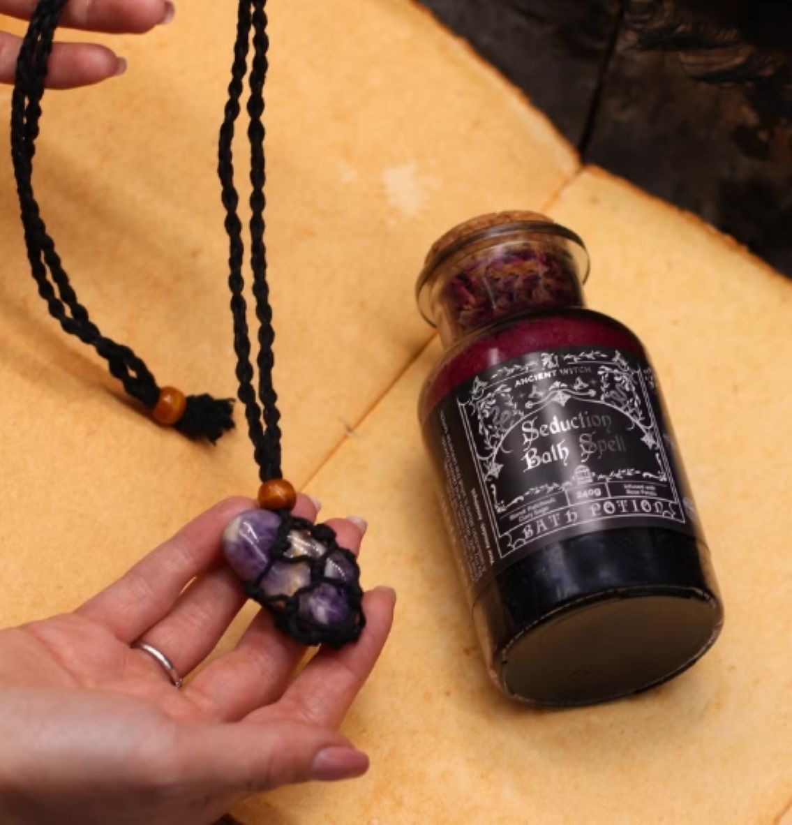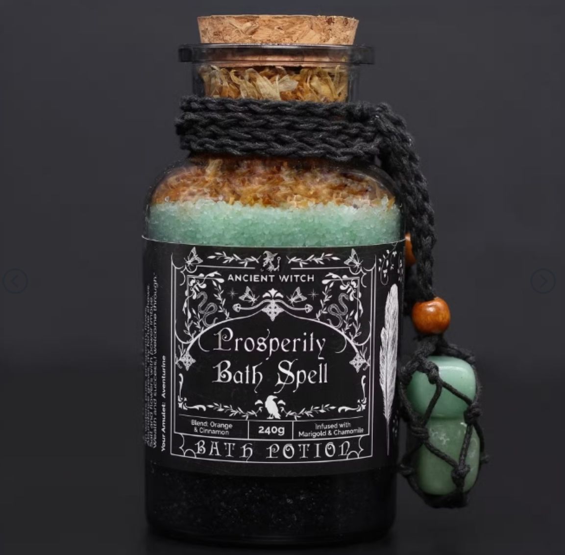 Ancient Witch Bath Spell Potion & Aventurine Crystal Amulet – Prosperity